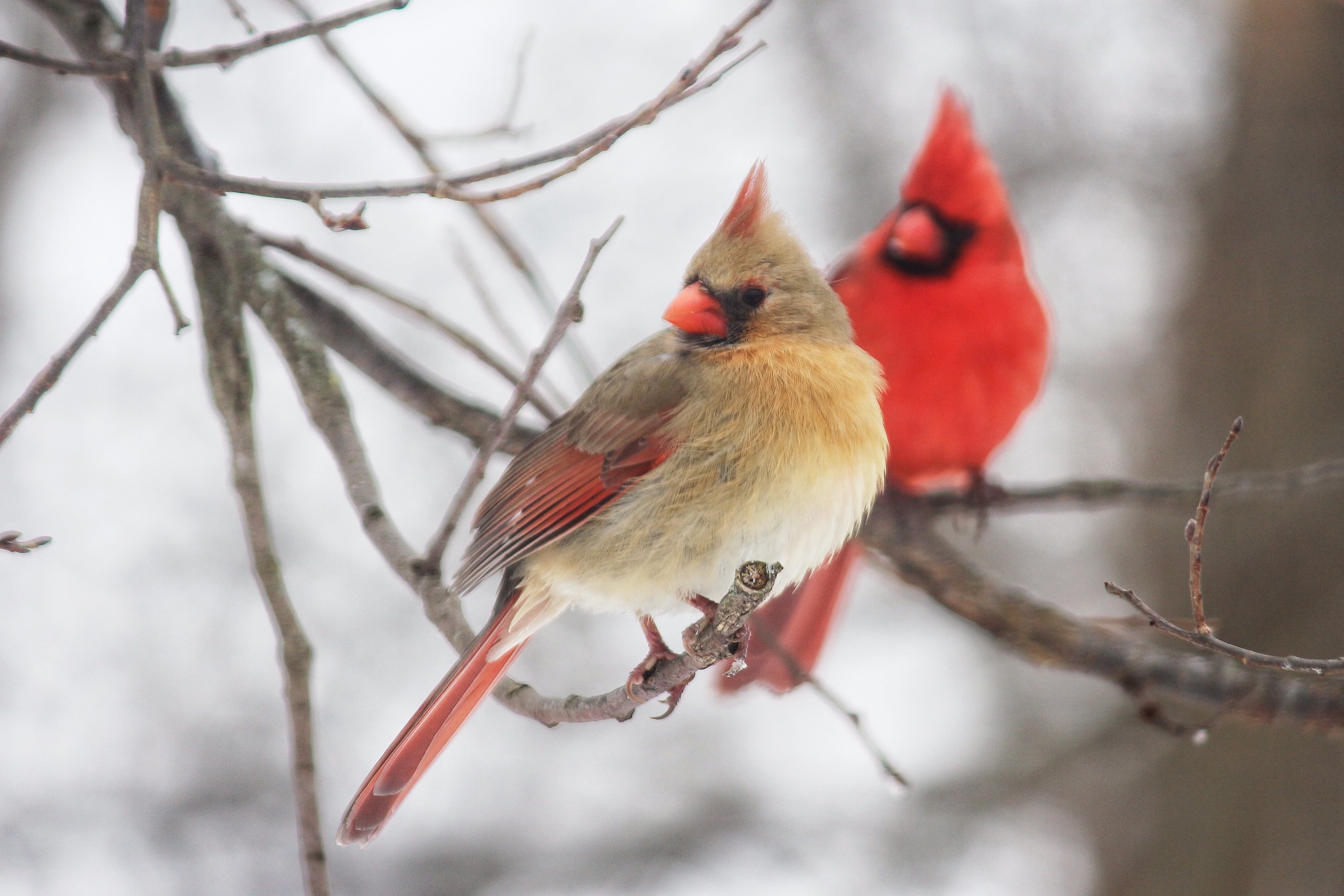 Cardinal Courtship Outside My Window